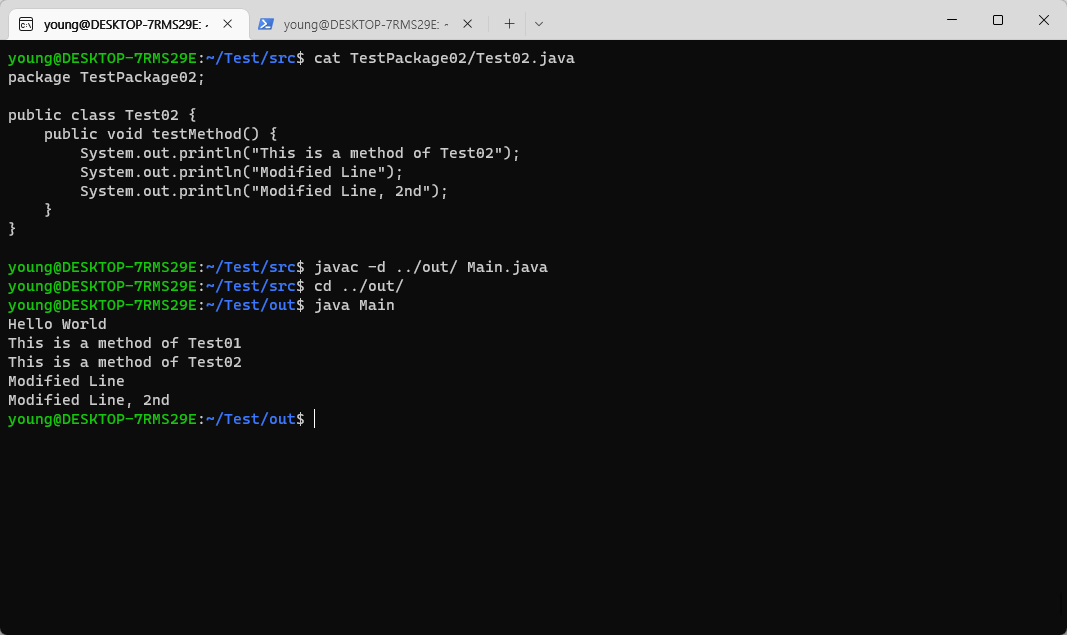 Test02.java 수정 내용이 반영된 것을 볼 수 있다.